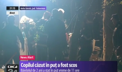 Copilul de un an și opt luni care a căzut într-un puț din Balta Sărată, județul Teleorman, a fost salvat. După 11 ore, băiețelul a fost scos de salvatori. El este monitorizat și e posibil să fie transportat, cu un elicopter, la un spital din București.