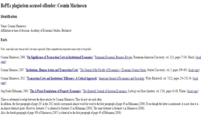 Conf. univ. dr. Cosmin Marinescu, de la Facultatea de Economie a Academiei de Studii Economice din Bucureşti, răspunde acuzaţiilor de plagiat apărute pe site-ul RePEc şi citate de Voxpublica.