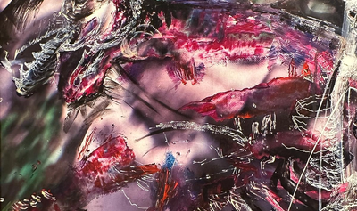 „Prin desen îmi marchez locul, existența. Traiectoria mea plastică este dată în mod firesc de relația complementară între ceea ce trăiesc și ceea ce visez. Obsesia pentru detalii anatomice nu este întâmplătoare, însă nici premeditată. Subconștientul (meu) este un sparring partner. Desenezi zona care te doare, iar creația devine un panaceu universal, o terapie”, arată artistul. El rememorează un moment – cheie în creația sa. „Puterea de convingere a liniei a fost determinată în noiembrie 2015. Într-o noapte la hotelul Ibis din București, G. L. mi-a pregătit un mic dejun cu 48 de carioci, o revistă Șoimii patriei și o pară. M-a repoziționat în raport cu pictura pe pânză și m-a împăcat cu linia. Un exercițiu simetric, primele mele scrawls-uri s-au întâmplat în 1979 pe caietele de lecții de franceză ale mamei mele”. Azi ne invită să îi admirăm picturile și desenele – intervenții pe fotografii. Unele au în fundal o bază NATO. Momentele actuale vor fi descoperite în lucrări de ochiul atent. Dincolo de linie, accente neon, diverse medii de culoare, siluete, un AKM, un mesaj, etc.