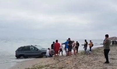 „Posesorul mașinii riscă să primească o amendă uriașă. 20.000 de lei ar putea să primească cei care intră cu autoturismele pe plajă. Doar că tânărul acesta nu a intrat doar pe plajă cu mașina, ci și în apă.Tinerii nu reușesc să scoată autoturismul din apă. Probabil va fi nevoie de un utilaj de la Apele Române”, informează Antena 3.