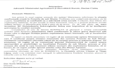 Mai mult, fostul deputat PSD cerea ministrului Agriculturii de la vremea respectivă să găsească o soluție convenabilă ambelor părți. „Considerăm că este de datoria ROMSILVA să găsească o soluție convenabilă ambelor părți, deoarece perpetuarea stării conflictuale ar aduce grave deservicii atât firmei care a câştigat licitația pentru exploatarea masei lemnoase (n.r. o firmă care lucrează pentru Holzindustrie Schweighofer), cât și locuitorilor comunei”, se arată în documentul oficial: