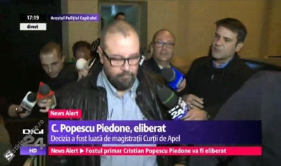 Cristian Popescu Piedone a fost eliberat de Curtea de Apel București după 5 zile de arest! Piedone nu a vrut să declare nimic la ieșirea din Arestul Central al Poliției București, dar a avut o primire triumfală. Piedone a fost primit cu aplauze de câțiva bucureșteni care l-au așteptat la ieșire.