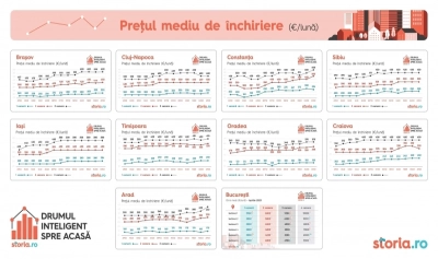 Cum au evoluat chiriile în alte orașe mari din țară, conform datelor Storia.ro