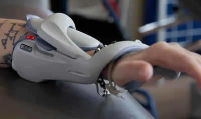 Lucrăm cu doamna Mârza folosind și echipamentul inovativ Bioness, adus în țara noastră în premieră la Spitalul de Recuperare Medicală ”Sfântul Sava”. Acest echipament ajută la recuperarea rapidă a funcțiilor mâinii prin stimulare electrică, realizând flexia, extensia și mișcarea mâinii, fără niciun fel de efort din partea pacientului.