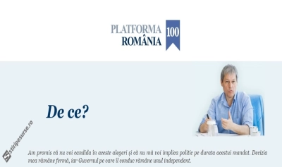 Așa cum a promis, Dacian Cioloș și-a lansat platforma politică propusă partidelor din România, ”o platformă de principii, valori şi proiecte care vor reflecta experienţa din lunile de guvernare”, cum o cataloga el. Platforma se numește "România 100".