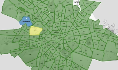 Cea mai vastă arie continuă afectată, conform datelor din noiembrie 2025, pare a fi în Sectorul 2. Zona 220, care acoperă un perimetru larg ce include cartierul Tei, zona Circului și se extinde spre Obor, este marcată integral cu nivel mediu de infestare.