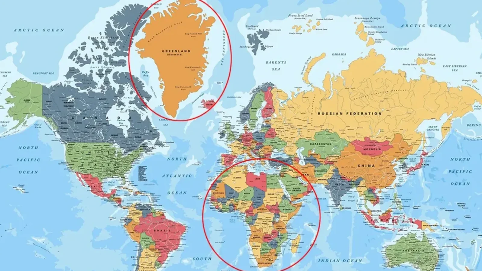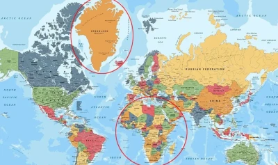 Privită pe multe hărți ale lumii, mai ales pe cele din manuale sau atlase mai vechi, Groenlanda pare aproape comparabilă ca dimensiune cu Africa. Imaginea este atât de răspândită încât a devenit un reflex vizual: o insulă enormă, așezată lângă Polul Nord, care pare să concureze cu un întreg continent.