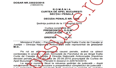 STIRIPESURSE.RO vă prezintă motivarea integrală a Curţii de Apel Bucureşti pentru rejudecarea cazului Rarinca.