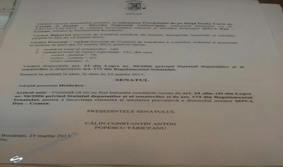 Senatorii puterii au găsit o metodă cu totul și cu totul inedită pentru a-l scăpa pe Dan Șova. Pentru că sunt obligați de Curtea Constituțională, senatorii au redactat o Hotărâre prin care constată că solicirea ministrului Justiției de încuviințare a arestării lui Dan Șova este respinsă.