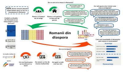 „Veniți dintr-o cultură în care familia și sentimentul de apartenență reprezintă valori esențiale, românii au, de cele mai multe ori, dificultăți în a se adapta într-un mediu nou, departe de familie. Pe de altă parte, oricât de mult și-ar dori să revină în România, corupția, nivelul scăzut de trai și diferențele de mentalitate reprezintă cele mai importante impedimente”, a spus Adina Nica, Managing Director Open-I Research. „Deși nivelul de trai pe care românii emigrați îl percep în străinătate este superior celui din țară, un procent important dintre aceștia dorește să se întoarcă în țară. Mai mult decât atât, ei sunt interesați să investească în deschiderea unei afaceri în România, iar un procent de 81% dintre ei trimit regulat bani în România.”