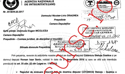Agenția Națională de Integritate i-a trimis o cerere lui Liviu Dragnea, în calitatea sa de președinte al Camerei Deputaților. ANI vrea ca doi deputați, Steluța Cătăniciu și Sorin Roman, să nu mai ocupe funcțiile ca urmare a unor decizii ale ÎCCJ.