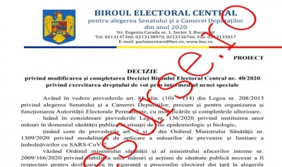 Biroul Electoral Central a modificat vineri decizia din 27 octombrie privind exercitarea dreptului de vot prin intermediul urnei speciale, făcând precizări în cazul alegătorilor aflaţi în carantină sau izolare la domiciliu.