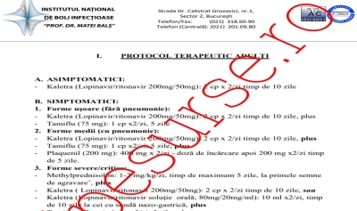 Institutul Matei Balș a stabilit schema de tratament pentru pacienții cu coronavirus. Extras din Decretul privind instituirea starii de urgenta: Art. 27 - Se autorizează prescripțiile de tratamente „off – label” în cazul pacienților infectați cu virusul SARS-CoV-2, după ce aceste tratamente sunt avizate de către comisia de politică a medicamentului din cadrul unității sanitare respective.