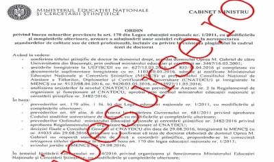 Gabriel Oprea rămâne fără titlul de doctor în drept, după ce ministrul Educaţiei, Mircea Dumitru, a semnat vineri ordinul de retragere a tilului de doctor al fostului vicepremier. " Se retrage titlul de doctor în domeniul drept, acordat domnului Oprea M. Gabriel de către Universitatea din Bucureşti, conferit prin ordinul ministrului educaţiei şi cercetării nr. 3467/16.03.2001", se arată în documentul postat pe site-ul Ministerului Educaţiei.
