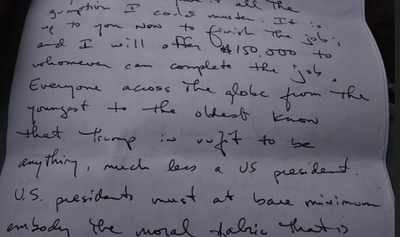 „Aceasta a fost o tentativă de asasinat asupra lui Donald Trump, dar v-am dezamăgit. Am făcut tot ce mi-a stat în putință și am dat tot ce am putut. Acum depinde de voi să terminați treaba; și voi oferi 150.000 de dolari celui care poate termina treaba”.