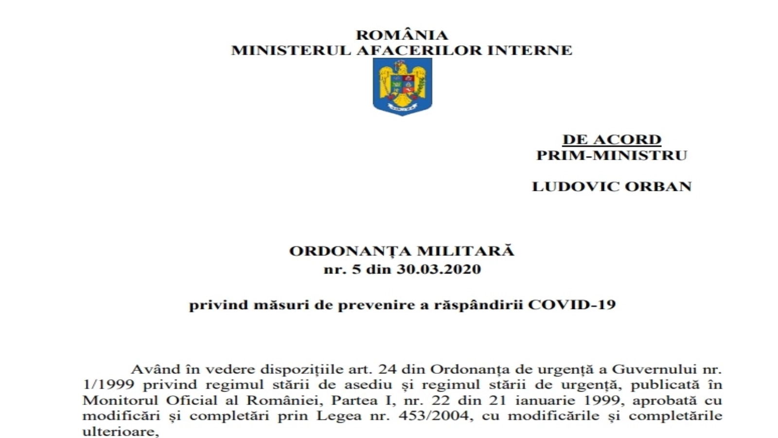 Tot în Ordonanța Militară nr. 5, se prevede faptul că persoanele care părăsesc carantina vor fi obligate să reia carantina, să plătească toate costurile și vor răspunde penal pentru fapta lor.