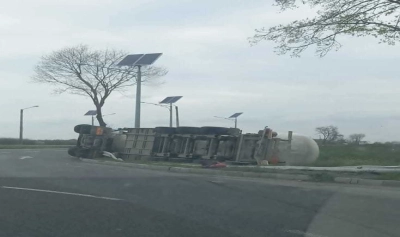 "Din informaţiile pe care le avem, aceasta ar fi avut o problemă la una dintre anvelope, care a făcut explozie. Nu au fost persoane rănite. Pompierii acţionează pentru sablarea părţii carosabile, având în vedere faptul că pe şosea se află o balustradă, pe o distanţă de aproximativ 150 m. Este blocat sensul de mers spre Bucureşti", a menţionat ISU Giurgiu.