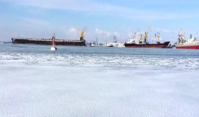 Remorcherele ASTANA și BUCUREȘTI spag zilnic gheața din Portul Midia pentru a ține deschisă calea de export pe mare a produselor petroliere.”, anunță echipa KMG Internațional.