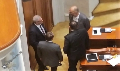 Discuția la care a participat și liderul senatorilor UDMR, Cseke Attila, a avut loc pe un culoar lateral, mai retras, al plenului Camerei Deputaților, și a durat aproximativ zece minute.
