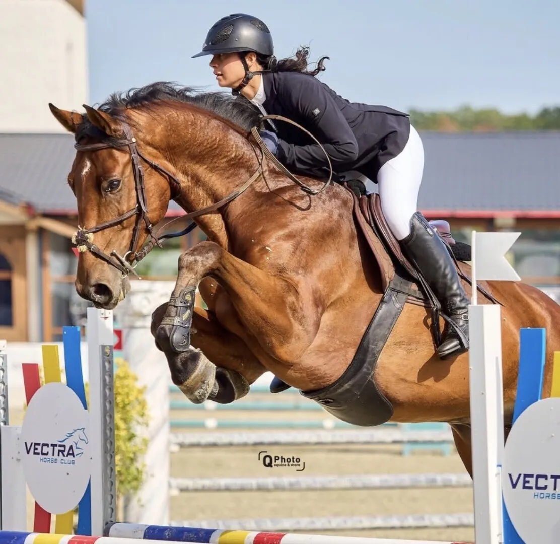Dunja Al Jamal este campioană balcanică cu echipa României de sărituri peste obstacole și concurează de mai bine de 11 ani alături de aceeași iapă, Gioconda. A început copil, a crescut în manej și a ajuns pe podium, într-o relație care i-a transformat pasiunea în performanță.