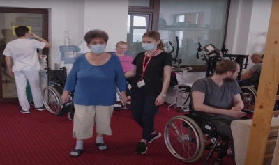 Pot să spun că e o echipă de profesioniști. Îi felicit cu ocazia asta! Sunt răbdători, înțelegători și asta ajută foarte mult pacientul. Acum pot să mă ridic din pat, să mă așez la masă. Acum plimb eu căruțul, nu mă plimbă el pe mine. Am început chiar și cadrul să-l plimb și să merg și fără, bineînțeles cu puțină supraveghere din partea kinetoterapeutului, ca să nu mă dezechilibrez să cad.”