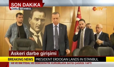 ”Această întâmplare este un dar de la Dumnezeu pentru că ne dă posibilitatea să curățăm armata de astfel de elemente”, a spus Erdogan înconjurat de adepții săi adunați în număr foarte mare la aeroport.