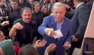 După ce a ieșit din secția de votare, încadrat de bodyguarzi, Erdogan a scos din buzunarul pantalonilor un teanc cu bani, a început să ofere bancnote oamenilor strânși pentru vot și le-a strâns acestora mâinile.