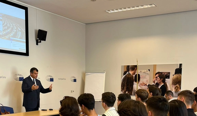 În cadrul vizitei, europarlamentarul i-a întâmpinat pe tineri în Grand Place și le-a fost gazdă în Parlamentul European, unde au discutat despre rolul Uniunii Europene, parcursul european al Republicii Moldova și așteptările tinerei generații.