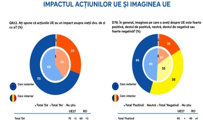 În plus, 70% dintre cetăţenii UE (60% dintre cetăţenii români) consideră că acţiunile UE au un impact asupra vieţii lor de zi cu zi. Mai mult de o treime dintre cetăţenii UE consideră că lupta împotriva sărăciei şi excluziunii sociale (36%) şi sănătatea publică (34%) reprezintă principalele subiecte cărora Parlamentul European trebuie să le acorde prioritate.