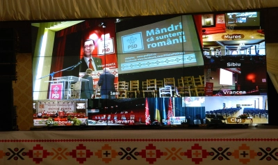 Rand pe rand, regiunile au intrat in direct cu sala Cupola din "Hotelul Mercur", unde au anuntat voturile pentru Ponta printr-un sistem de videoconferinte.