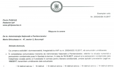 "Referitor la faptele pentru care sunt condamnaţi deţinuţii care îndeplinesc vocaţia pentru a fi analizaţi în comisia pentru liberare condiţionată, menţionăm că acestea sunt variate şi cuprind întreaga arie a faptelor care constituie temei al răspunderii penale. Reiterăm faptul că toate persoanele condamnate au intrat în aria de reglementare a Legii nr. 169/2017, beneficiul compensatoriu aplicându-se indiferent de regimul de executare sau faptă, astfel că, pentru fiecare 30 de zile de custodie în condiţii necorespunzătoare, persoanelor private de libertate li se consideră executate suplimentar 6 zile din pedeaspa aplicată", precizează ANP.