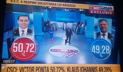 Potrivit SOCIOPOL, Victor Ponta se afla pe prima pozitie la o diferenta foarte mica avand doar 50,9%, fata de candidatul ACL Klaus Iohannis care a inregistrat 49,1%.