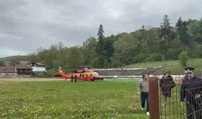 Experţii au plecat de la București și s-a apelat la acest elicopter tocmai pentru ca să ajungă cât mai repede la fața locului, deoarece trebuie să fie făcută o evaluare foarte serioasă după ce acea stradă din mijlocul localității s-a surpat în această dimineață.