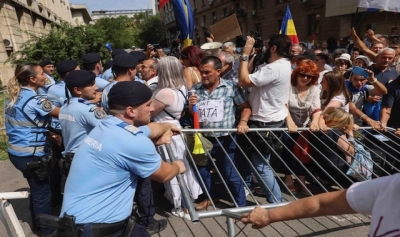 ”Totodată, pe timpul adunării publice, un bărbat s-a urcat pe faţada clădirii şi, în acest moment, prin echipele noastre de dialog, încearcăm să determinăm persoana să coboare în siguranţă. Precizăm faptul că au fost identificate mai multe persoane care au încălcat cadrul legal în vigoare, împotriva acestora urmând a fi aplicate măsuri legale de sancţionare”, a mai transmis Jandarmeria.