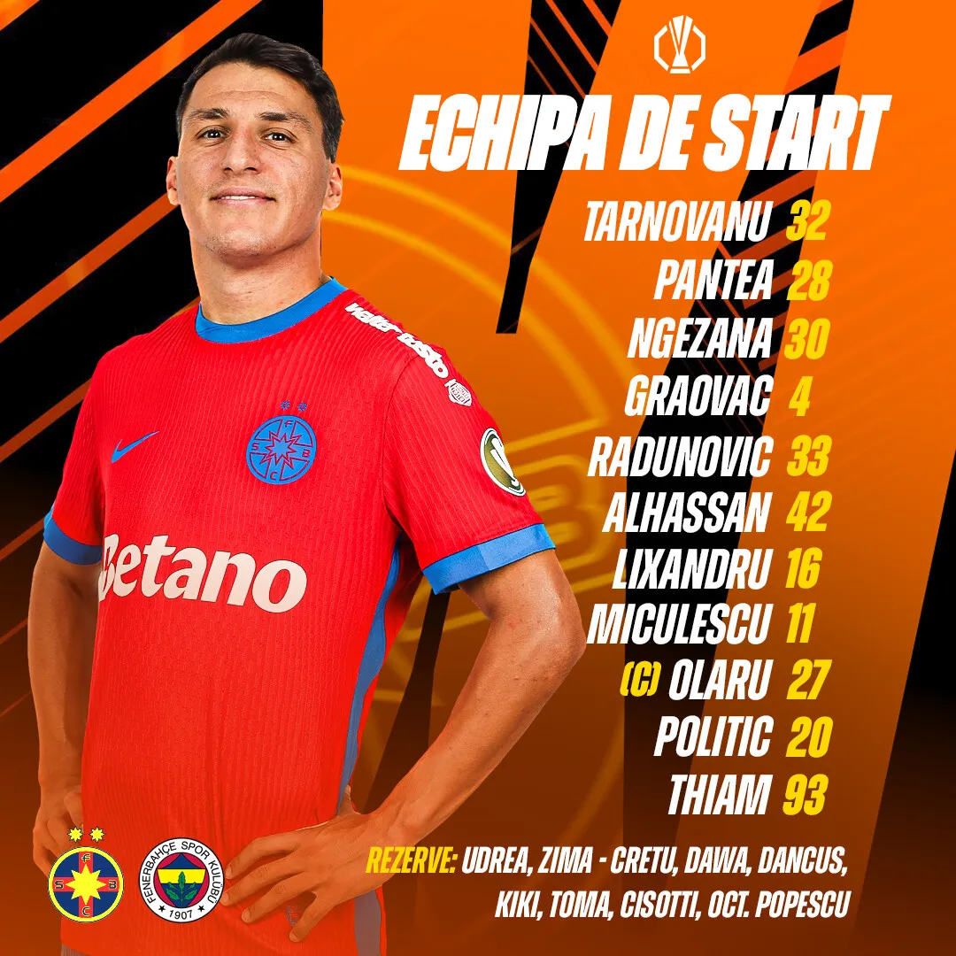 FCSB o întâlnește pe Fenerbahce la această oră, pe Arena Națională, în ultimul meci al grupei Europa League. Meciul este liveTEXT pe stiripesuse.ro și în direct la Prima Sport 1 și Digi Sport 1.