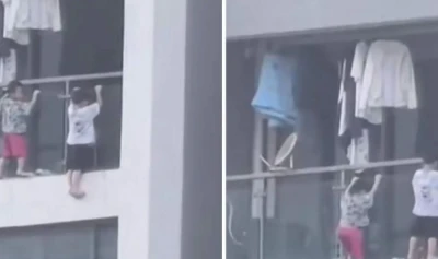 Un incident șocant într-un bloc din China a stârnit panică pe rețelele sociale. Imaginile care circulă intens arată doi frați în ipostaze extrem de periculoase: copiii se aflau în afara balconului apartamentului lor, situat la etaje superioare (peste 40 de metri înălțime).