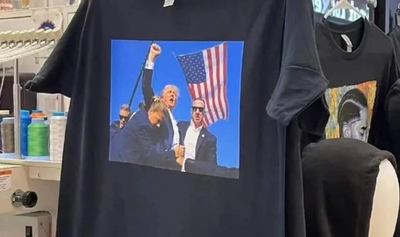 Pe rețelele de socializare, americanii promovează deja tricouri cu fotografia iconică a lui Trump ridicând pumnii în aer în timpul împușcăturilor de la un miting din Pennsylvania, sâmbătă.