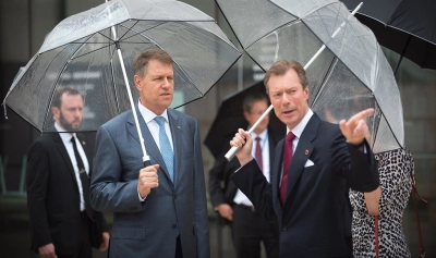 Mai spre seară au apărut și imagini cu președintele Klaus Iohannis cu marele Henri, marele duce de Luxembourg la o discuție lejeră în ploaie.