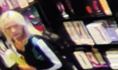 O femeie blondă neidentificată a fost filmată de camerele de supraveghere și pare să fure trei vibratoare cu o valoare de 210 lire sterline.