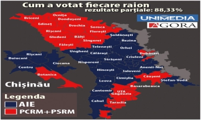Pentru partidele care vor în Uniunea Vamală (Partidul Comuniștilor din Republica Moldova și Partidul Socialiștilor) au adunat majoritatea în 15 raioane din republică: Dondușeni, Drochia, Bălți, Găgăuzia, Taraclia, Briceni, Ocnița, Edineț, Soroca, Florești, Fălești, Sângerei, Rîșcani, Glodeni și Căușeni.