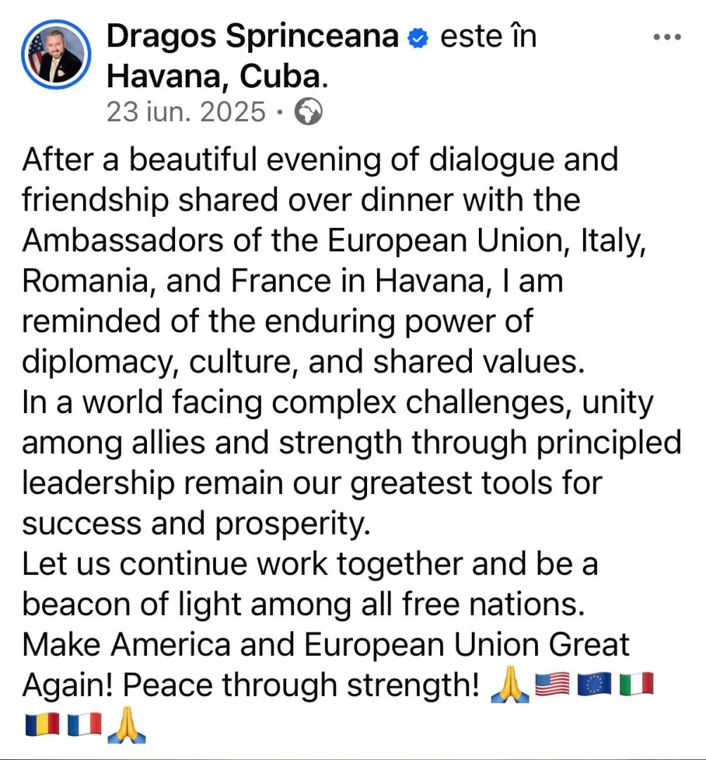 Dragos Sprânceană, menționat în ancheta DNA pentru trafic de influență, petrecea pe banii României la Ambasada României din Cuba.
