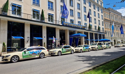 El a postat și câteva fotografii alături de taxiuri din Munchen.