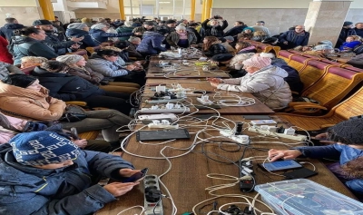 Ucrainenii din Hersonul eliberat de ruși dau o adevărată luptă pentru supraviețuire! Chiar și pentru încărcarea telefoanelor ei stau la rând, totul pentru a prinde o priză liberă, arată Nexta într-o fotografie.