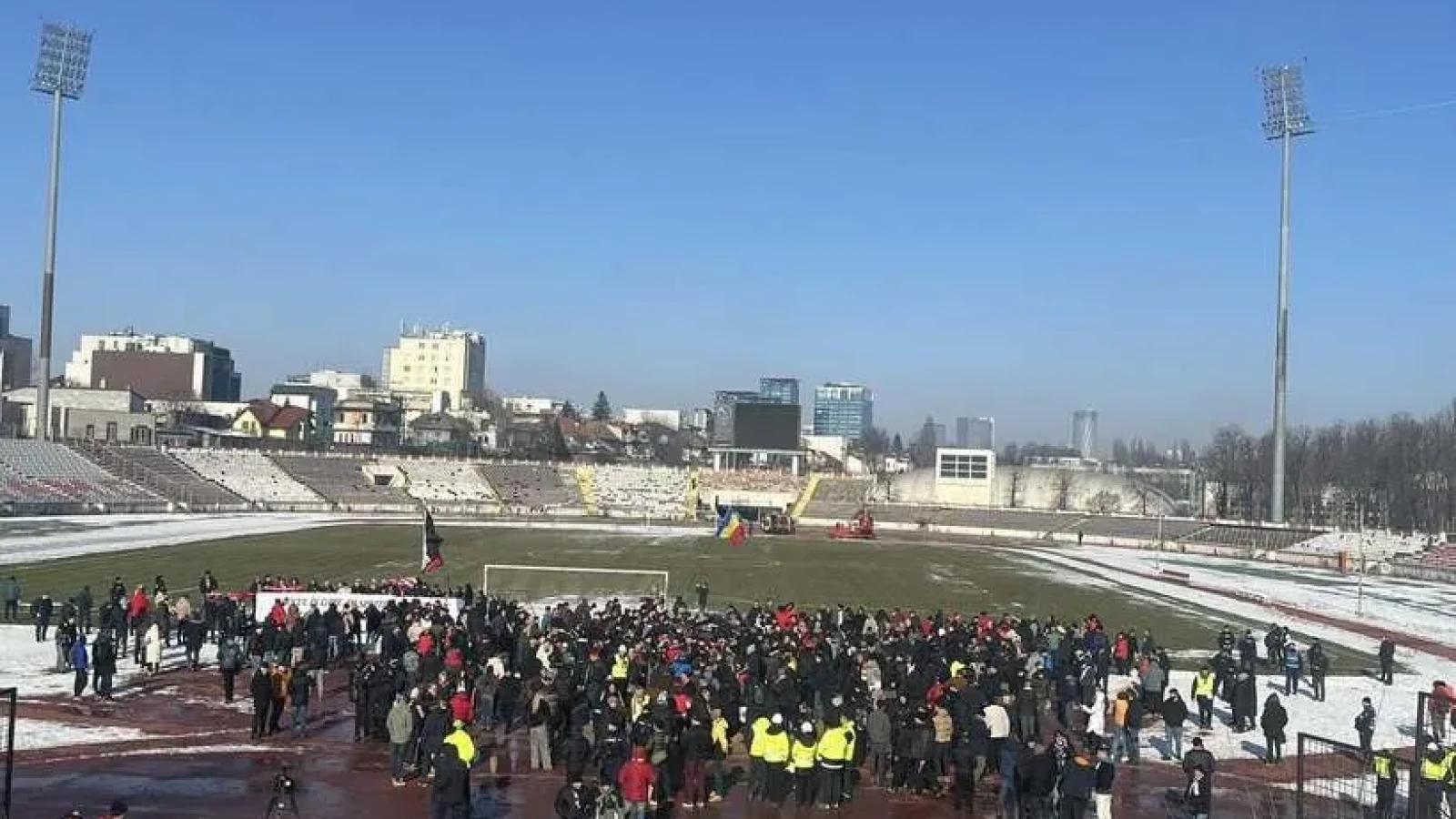 ”Locul în care am simţit mereu glorie, de azi înainte va fi doar istorie”, a fost un banner afişat de suporteri, în frunte cu oficialul CS Dinamo, Ionuţ Lupescu.