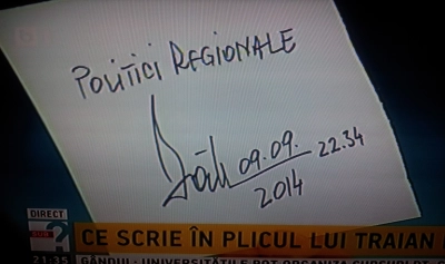 El i-a cerut lui Robert Turcescu să deschidă plicul sigilat după ce va fi făcut anunțul oficial de Jean Claude Junker. Jurnalistul Robert Turcescu a deschis bilețelul, iar în el se afla scris: ”Politici Regionale”, adică exact portofoliul pe care l-a primit România.