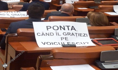 Opoziția s-a lovit de refuzul PSD și a acționat în consecință. În plenul Camerei Deputaților, premierul Victor Ponta a fost așteptat cu bannere pe care scria: ”Ponta, când îl grațiezi pe Voiculescu?”.