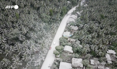 VIDEO: Philippine town blanketed in ash after volcanic eruption.