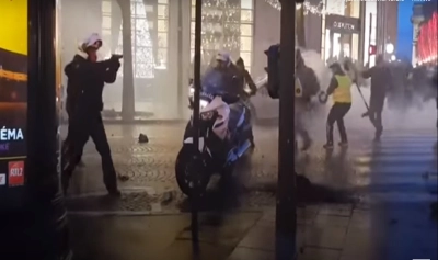 Poliţia şi protestatarii de la "Vestele galbene" s-au ciocnit din nou, sâmbătă seara, în capitala franceză, Paris, relatează Mediafax.