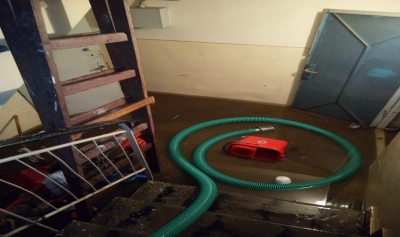 „În acest moment un echipaj din Punctul de Lucru Florești mai acționează pentru evacuare apei din subsolul unui bloc de apartamente care a fost inundat în cursul serii trecute. În acest caz a fost inundat un subsol cu o suprafață de cca 2000 mp, cu cu funcțiunea de garaj. Apa acumulată în urma ploilor abundente a depășit adâncimea de 1 m în subsolul respectiv, acumulându-se în subsol cca 2000 de tone, au fost deteriorate mai multe autoturisme și bunuri, parcate sau depozitate acolo.