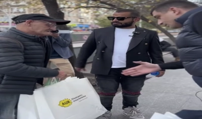 Conform unui video apărut pe pagina celor de la AUR, George Simion este preluat de la Parlament de către un bodyguard, iar apoi se urcă într-un Mercedes Vito pentru a împărți pungi cu alimente oamenilor din București.